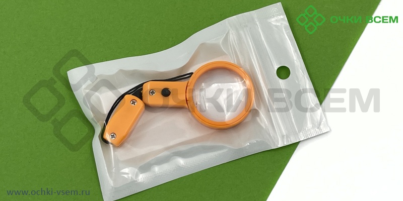 ЛУПА MAGNIFIER БРЕЛОК A09636 Оранжевый с подсветкой d30мм 5х