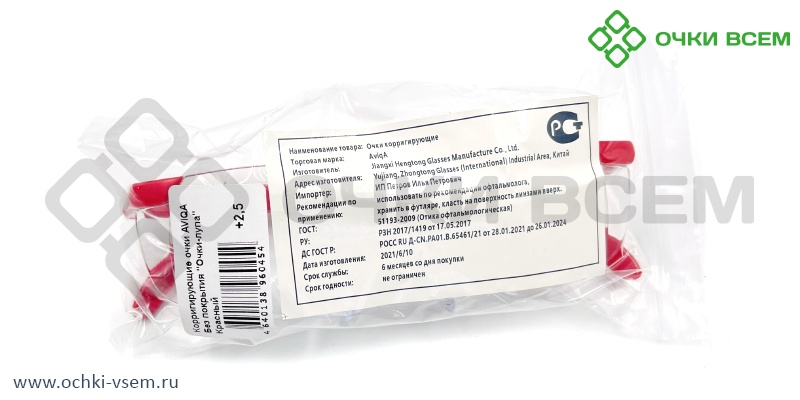 ОЧКИ КОРРИГИРУЮЩИЕ AVIQA БЕЗ ПОКРЫТИЯ "Очки-лупа" Красный